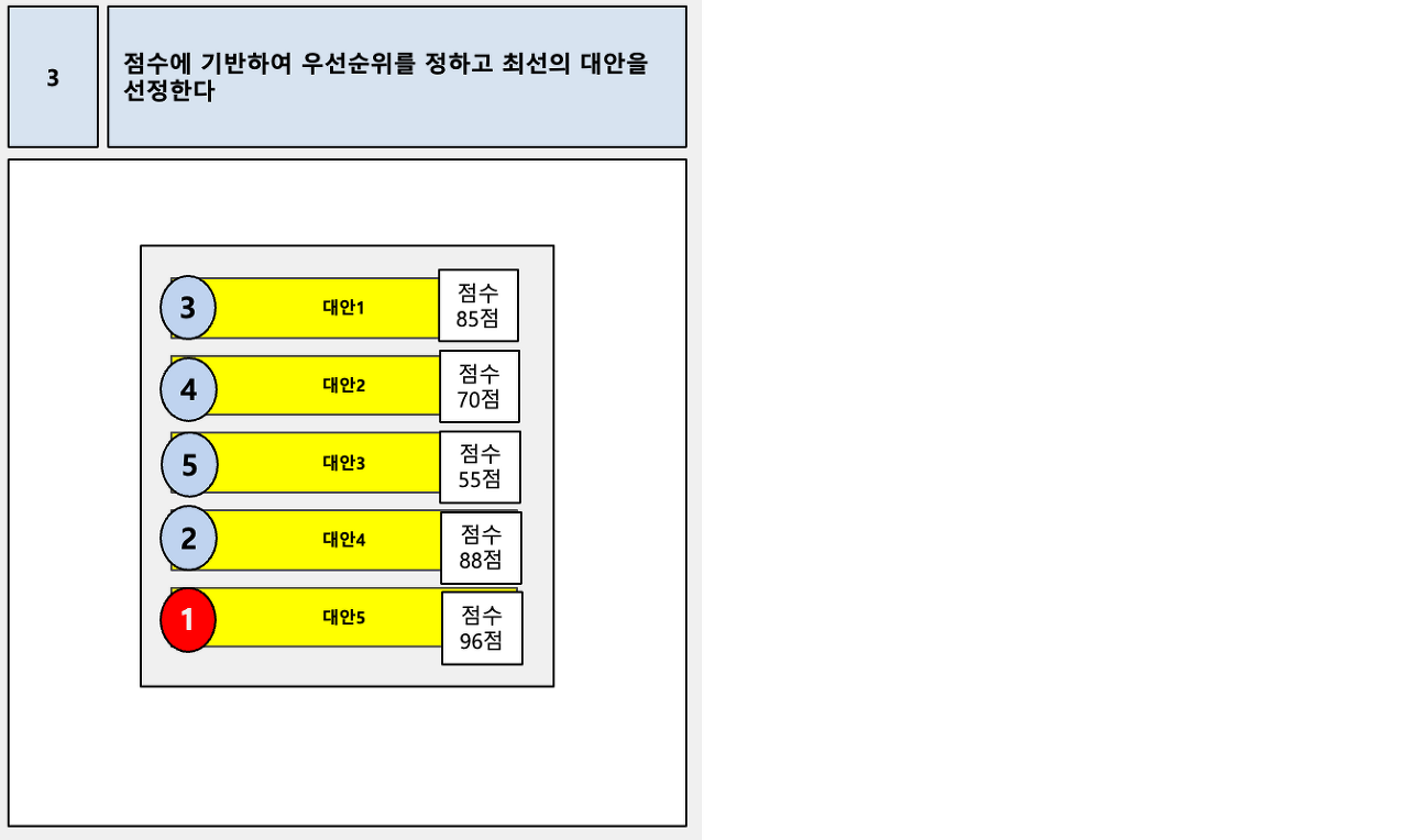 기준(가치 척도)에 따라 대안의 우선순위를 정하고 최선의 대안을 결정하기 위함