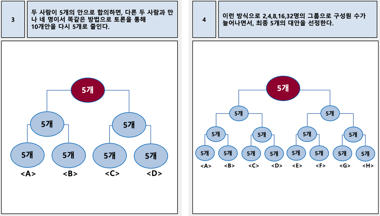 다양한 구성원들의 의견을 충분히 수렴할 수 있고, 그들의 공통된 의견을 도출할 수 있다.