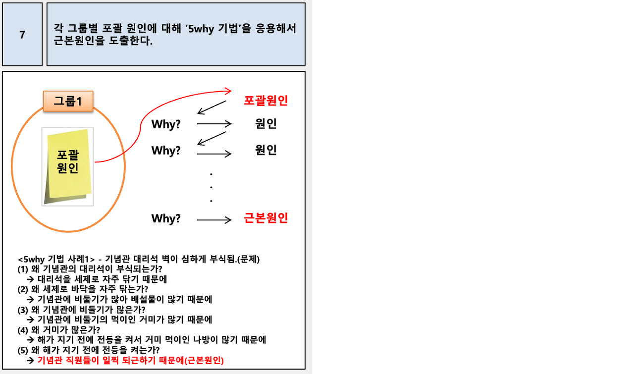 - 유의사항 : 근본원인 분석 시 유의사항(5 why 기법 유의사항)