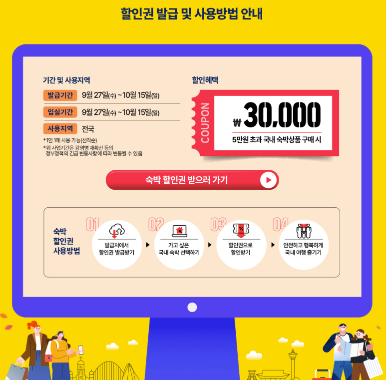 쿠팡 숙박 세일 페스타 (9.27~10.15) / 국내 숙박 3만원 무조건 할인 받기유용한 자료, 사이트 등 2023. 10. 3. 23:15