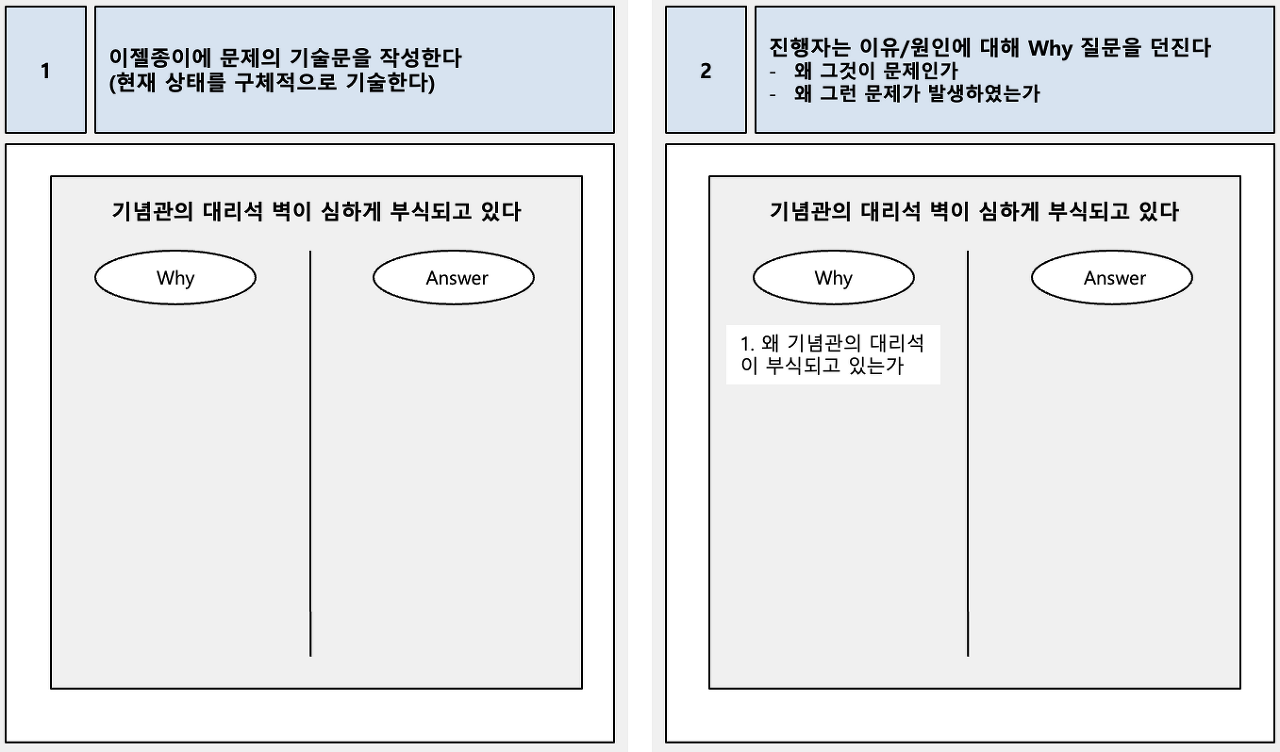 더 이상 ‘왜’라고 질문할 수 없을 때까지 작성(대답) 해야 한다.